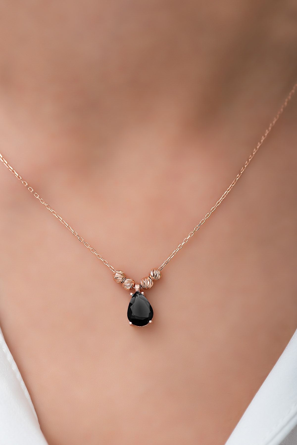 Siyah Zirkon Damla Kolye Kenarları Çift Dorica Toplu Rose Altın Kaplama 925 Ayar Gümüş - UVPS100116Maden: 925 Ayar gümüş.Taş: Nano ZirkonTaş Yüksekliği : 10mm.Teş Eni : 5mm.Kaplama : Rose Altın kaplama.Renk : Rose Altın - SiyahZincir uzunluğu: 43 cm.Ürün ağırlığı : 3.5 Gr (+-).Teslimat: Papatya Silver tarafından ürün kutusunda gönderilecektir. 15 gün iade garantisi.