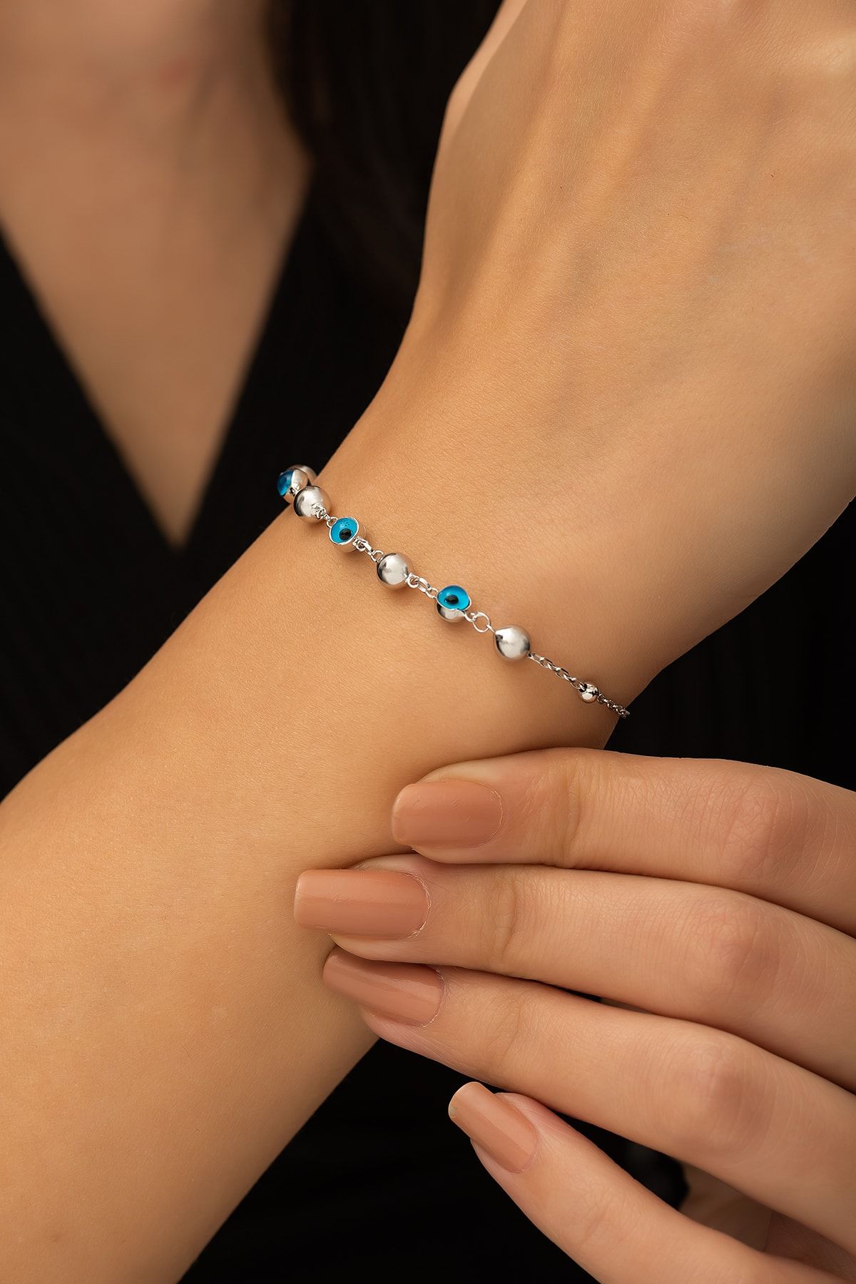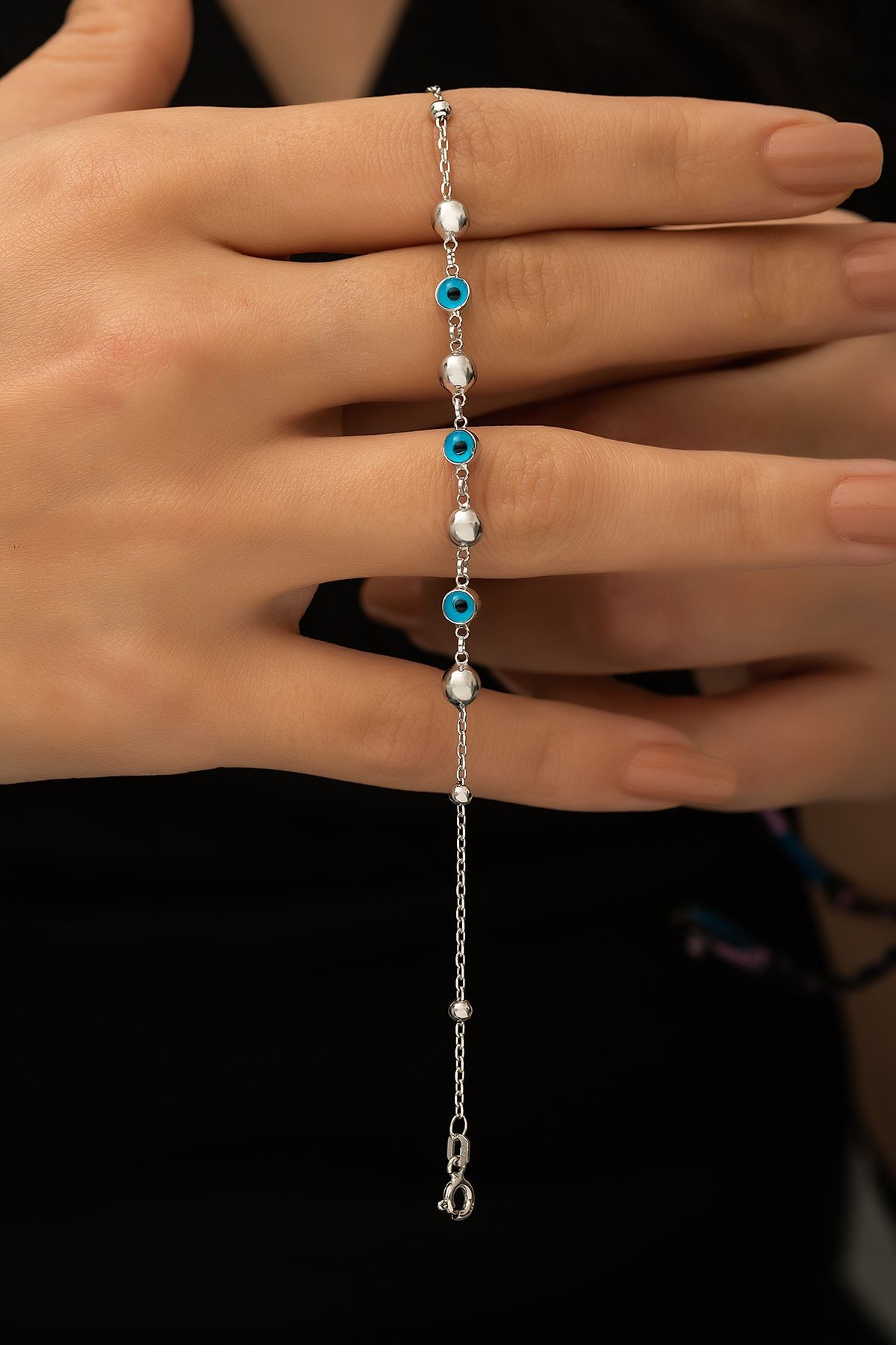 Üç Nazargözlü Dorica Toplu Rodyum Kaplama 925 Ayar Gümüş Bileklik - UVPS200115Maden : 925 Ayar gümüş.Değerli Taş : Doğal Taş.Kaplama : Rodyum Kaplama - Mine.Renk :Gümüş.Zincir uzunluğu : 18 cm + ( 3 cm uzatma zinciri )Ürün ağırlığı :6 - 7 Gr (+-).Teslimat: Papatya Silver tarafından Ürün ahşap hediye kutusunda gönderilecektir.