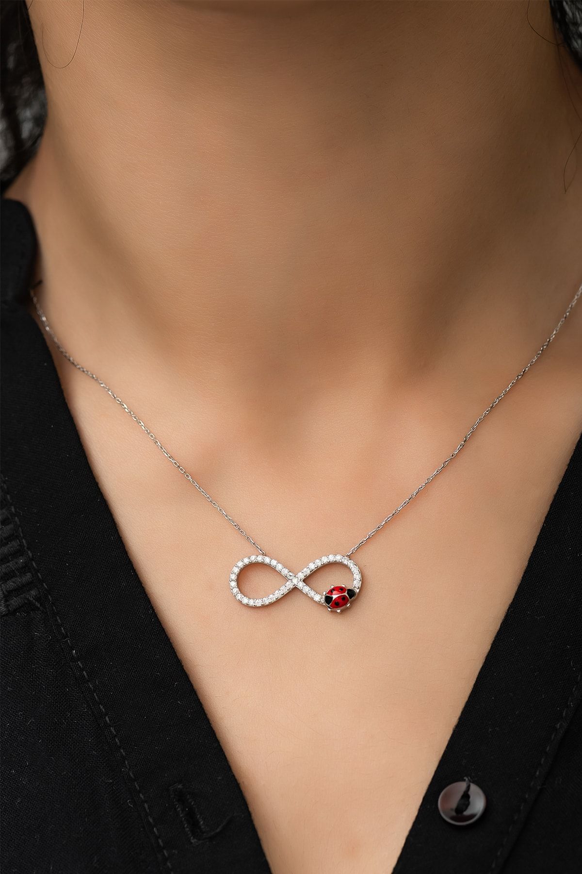 Siyah Taşlı Gümüş Sonsuzluk Kolye